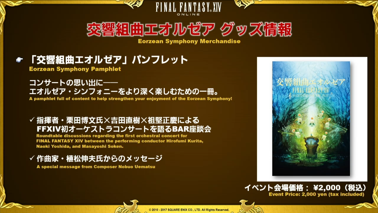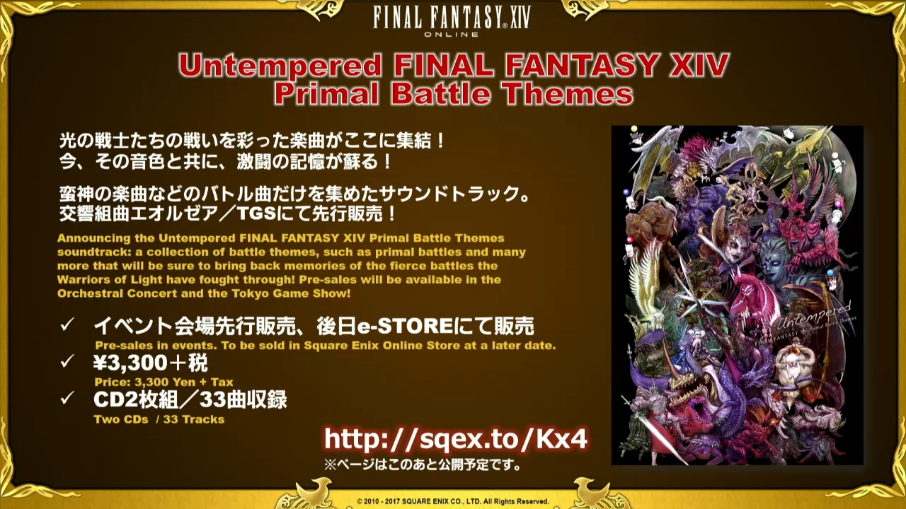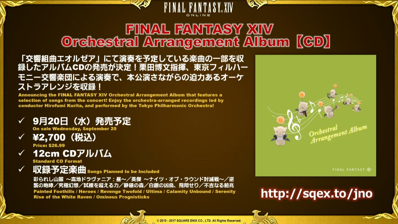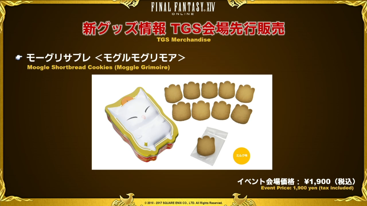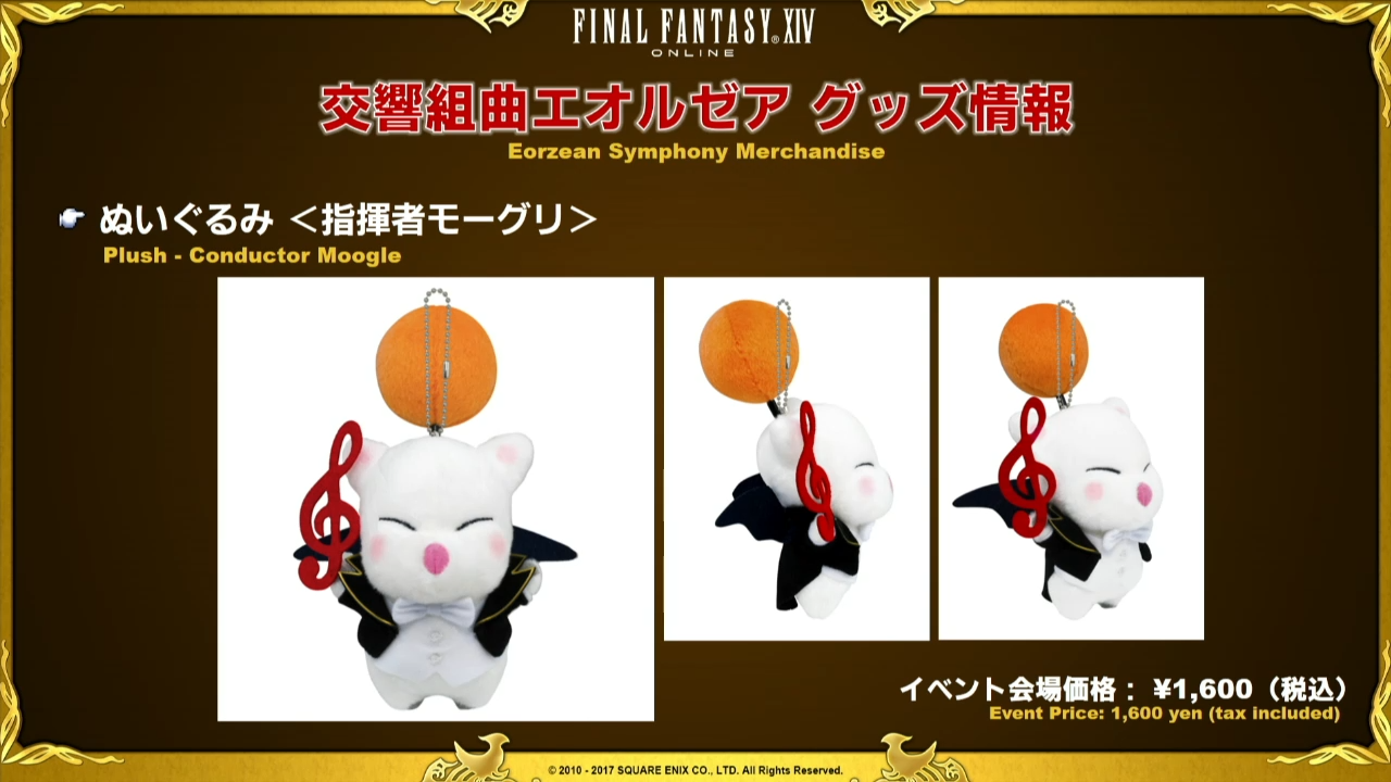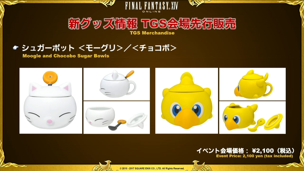 La Lettre live se termine ensuite tranquillement sur les prochains évènements à venir, c’est à dire les différents concerts de l’Eorzean Symphony avec les goodies qu’il sera possible d’acquérir dont deux boîtes à musique, une peluche Mog et un porte-clé Fanfare Mog, question goodies, le Tokyo Game Show n’est pas en reste car quelques sympathiques objets sont montrés dont une sucrière Mog et Chocobo. Yoshida nous informe également de la sortie de Daddy Of Light dont nous vous parlerons dans un prochain article.