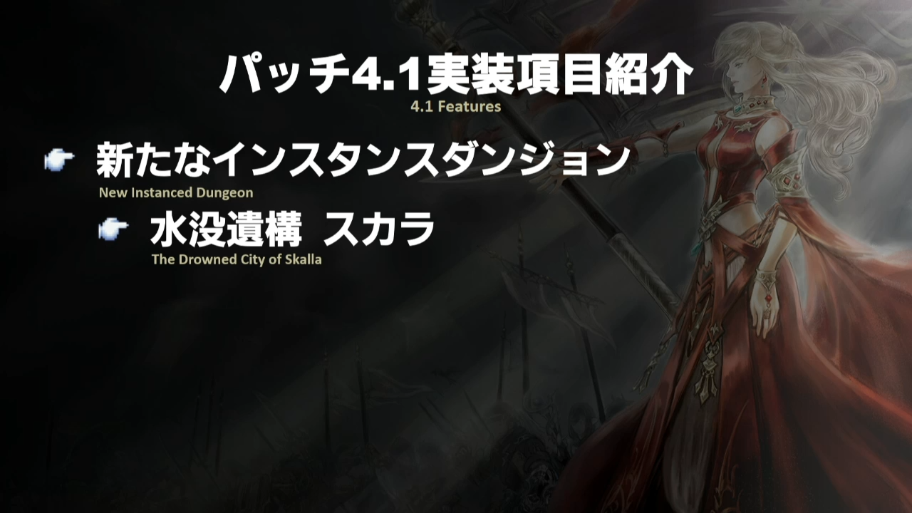 Une nouvelle instance fait aussi son apparition et a pour titre Anglais « The Drowned City of Skalla » dont l’architecture rappelle ce que nous pouvons voir à Ala Mhigo.