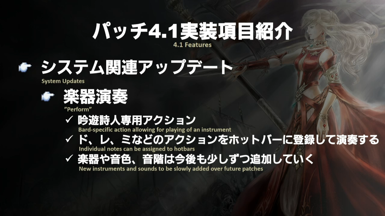 Parfaitement, les Bardes auront quelques notes à disposition qu’ils pourront ajouter sur les barres de raccourcis et ainsi créer quelques compositions, il est précisé que ce genre d’ajout sera mineur pour l’instant et qu’une gamme complète de notes et d’instruments seront ajoutés lors des différents patchs. Gamme… mineur… vous avez comp- bref, poursuivons.