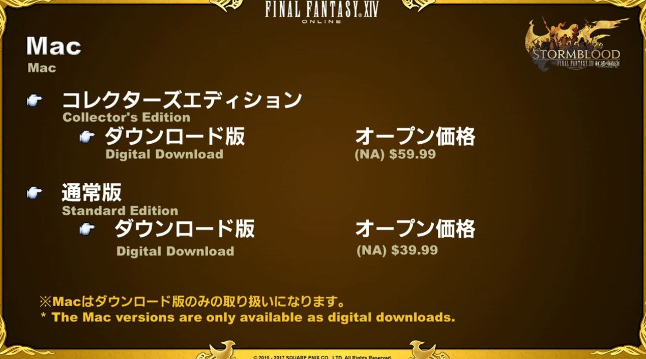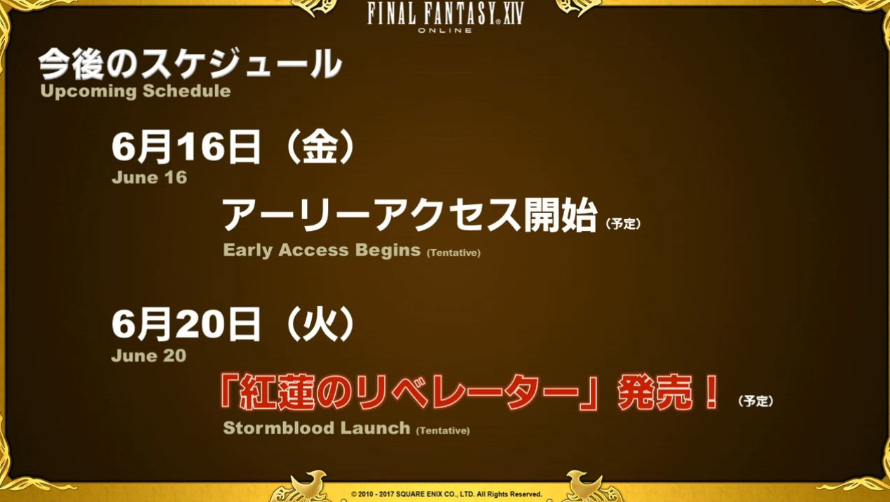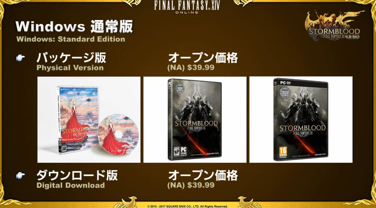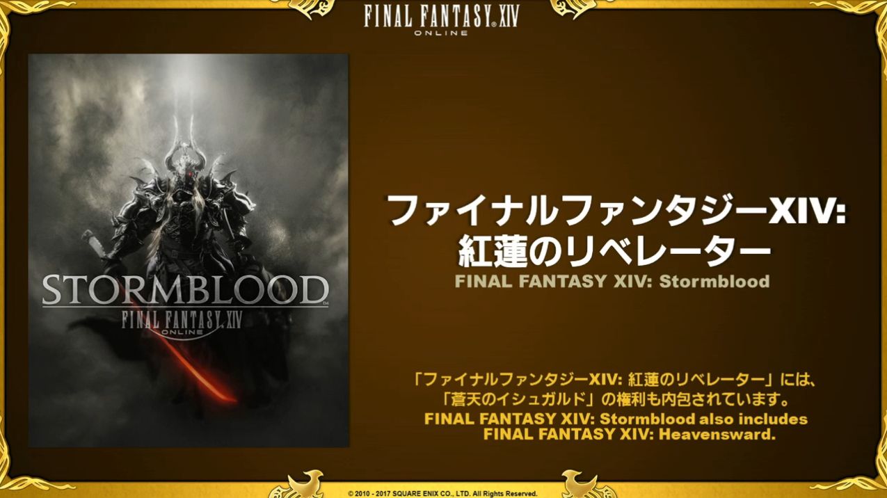 Confirmant la date du mardi 20 juin 2017, pour la sortie simultanée de Stormblood au Japon, en Amérique du Nord et en Europe, ils enchaînent ensuite sur les différentes versions en ventes :