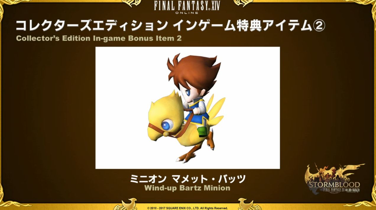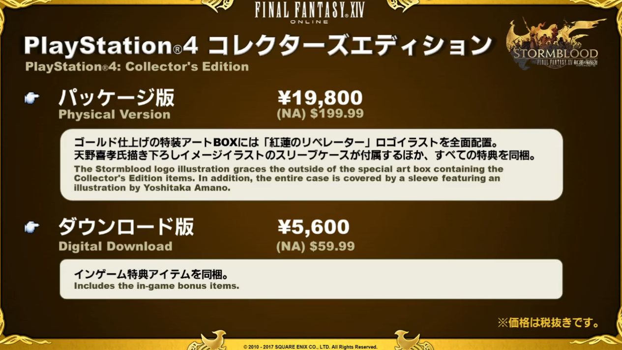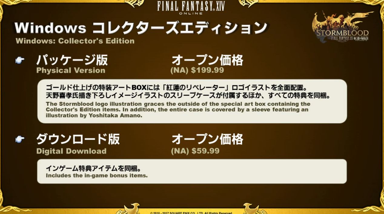 Aujourd’hui, Naoki Yoshida et Toshio Murouchi ont dévoilé le contenu des coffrets collector de l’extension Stormblood qui seront en pré-vente dès le 24 janvier 2017.