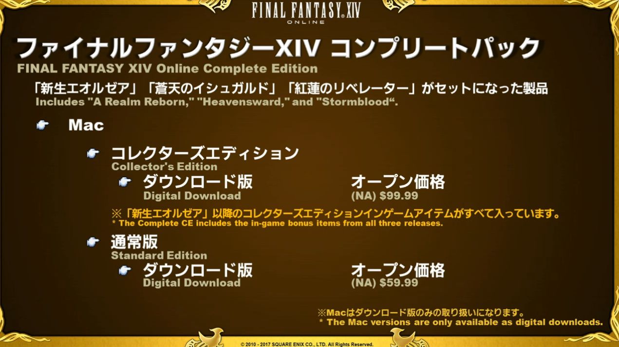 Les versions PlayStation 4 et Mac seront au même prix et contiendront les mêmes objets que celles de Windows. Les versions Mac ne seront disponibles qu’en version digitale, collector et standard, au même prix.