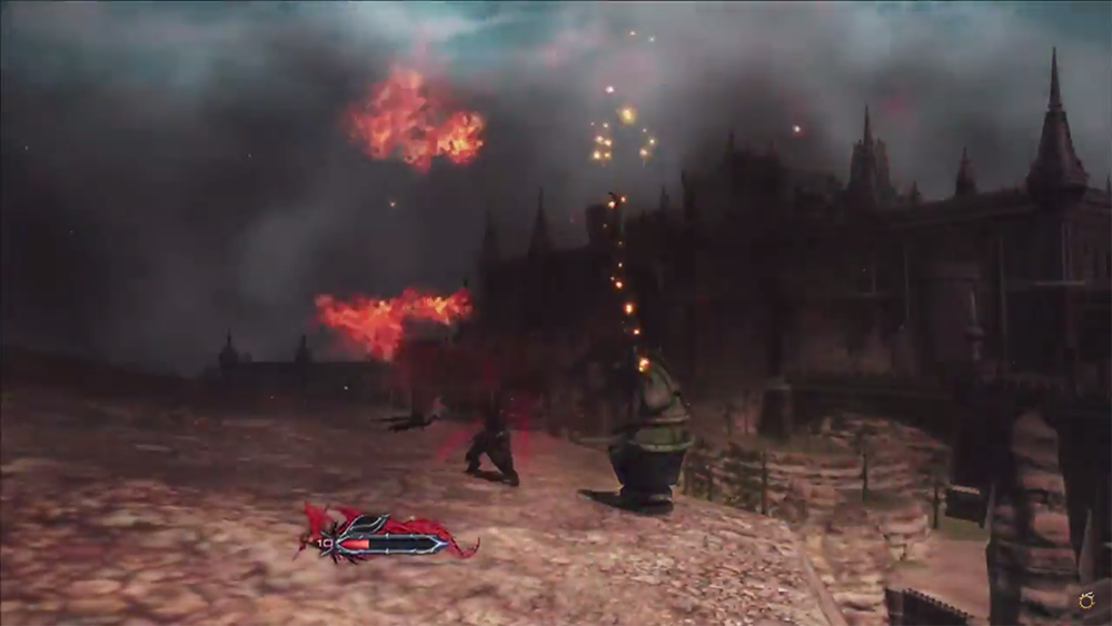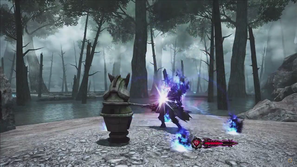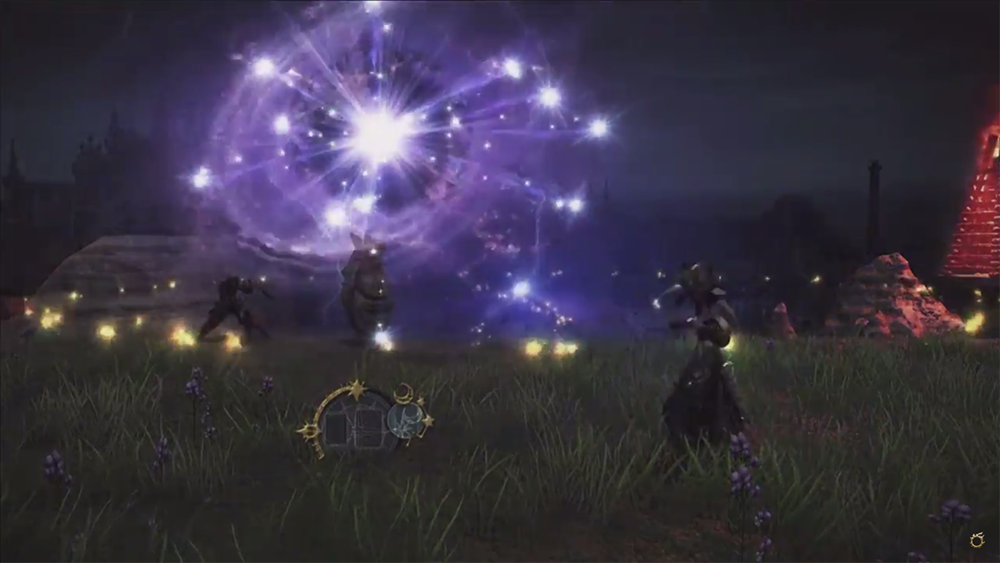 - Par ailleurs, en maintenant Enochian, sa jauge chargera un petit cristal, en bas de la jauge, après 30 secondes permettant d’utiliser une nouvelle capacité appelée « Foul » (faute ou triche). On peut remarquer dans la vidéo que le cristal reste illuminé en violet une fois chargé, même hors du combat, et que la jauge continue à se charger après, permettant de libérer la compétence à n’importe quel moment, même juste avant la fin de la charge, et de l’enchaîner une seconde fois.