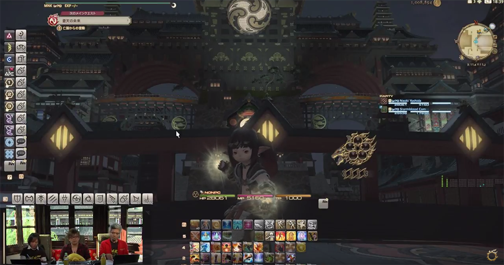Yoshida a tenu tout d’abord à remercier les joueurs venus assister à la Live Letter, puis a précisé qu’il était 1h du matin au Japon, et qu’il espérait que les joueurs japonais aient pris leur journée de repos afin de pouvoir suivre la diffusion. Il a également prévenu que nous allions voir des actions et l’ATH de Stormblood, mais qu’il était possible que des changements soient opérés d’ici la sortie de l’extension, le 20 juin.
