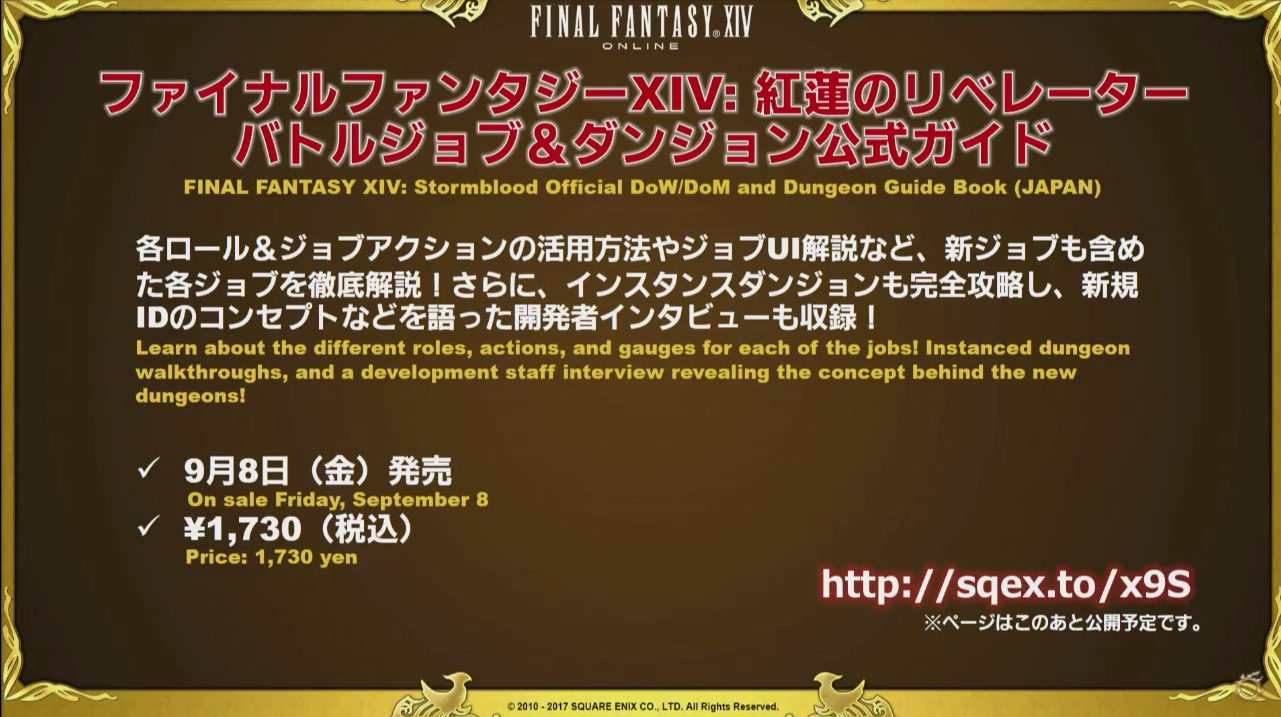 - Le guide officiel des donjons et des classes de Stormblood sortira au Japon le 8 septembre
