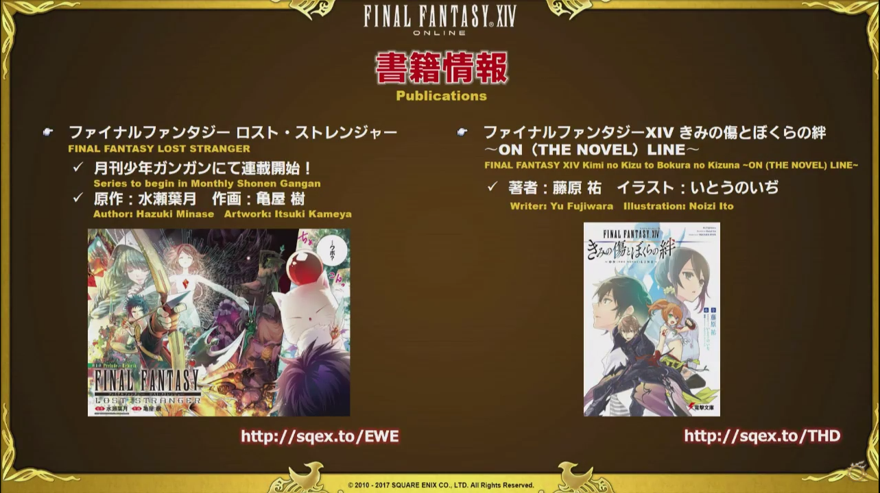 - Deux mangas vont sortir : Final Fantasy Lost Stranger et Final Fantasy Kimi no Kizu to Bokura no Kizuna ~ON (THE NOVEL) LINE~