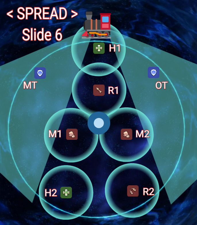 ⇒ Les autres joueurs devront se placer sur l’axe du clone soit en SPREAD ou en LIGHT PARTY (Groupe)
