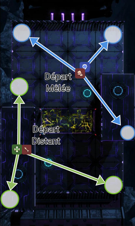 – Ce qui signifie que vous aurez dans chaque cas, 2 safe spot possibles ( coin de l’arène )