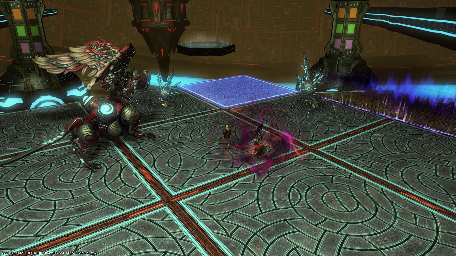 Des Alarums mécaniques apparaissent sur différentes cases de l’arène. Tuez-les avant qu’ils ne lancent le sort Séquence d’activation, qui pose une AoE sur la case où se trouve l’add, où vous ne pourrez plus aller sous peine de recevoir des stacks de vulnérabilité. Les monstres avancent et continuent de condamner les cases tant qu’ils ne sont pas détruits.